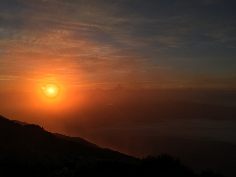 Berhenti jap tengok SUNRISE. Saya dah mendaki lebih 20 gunung, Allahuakbar, saya tak pernah melihat lagi pemandangan yang sungguh indah, menakjubkan dan Subhanallah cukup hebat. Dengan awan karpet, melihat matahari terbit dan nampak sinar-sinar pancaran dari celah-celah gunung, berlatarbelakangkan bayangan gunung-gunung sekitar dan pemandangan kawasan penempatan. Yer seperti pemandangan Gunung Kinabalu. Tapi kat sini berbeza.Kami teruskan perjalanan dan sampai di Tugu (3,600+ meter) bagi memperingati pendaki pertama yang mati iaitu Adi Permana Atje yang pada mulanya hilang pada 11 Disember 1983. Jenazahnya berjaya ditemui.