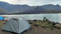 Setelah 3 jam menuruni gunung, akhirnya kami tiba di danau Segara Anak dengan ketinggian 2,004 meter. Keluasannya 11.3 kilometer persegi dengan kedalaman maksimum 230 meter. Air danau yang biru kehijauan. Berdekatan dengan gunung Barujari yang masih aktif mengeluarkan asap sulfur. Danau yang dikelilingi lereng-lereng dan rabung gunung. Hujan semakin lebat, kami hanya berkampung sahaja di dalam khemah sambil bersembang tentang pengalaman pendakian masing-masing.